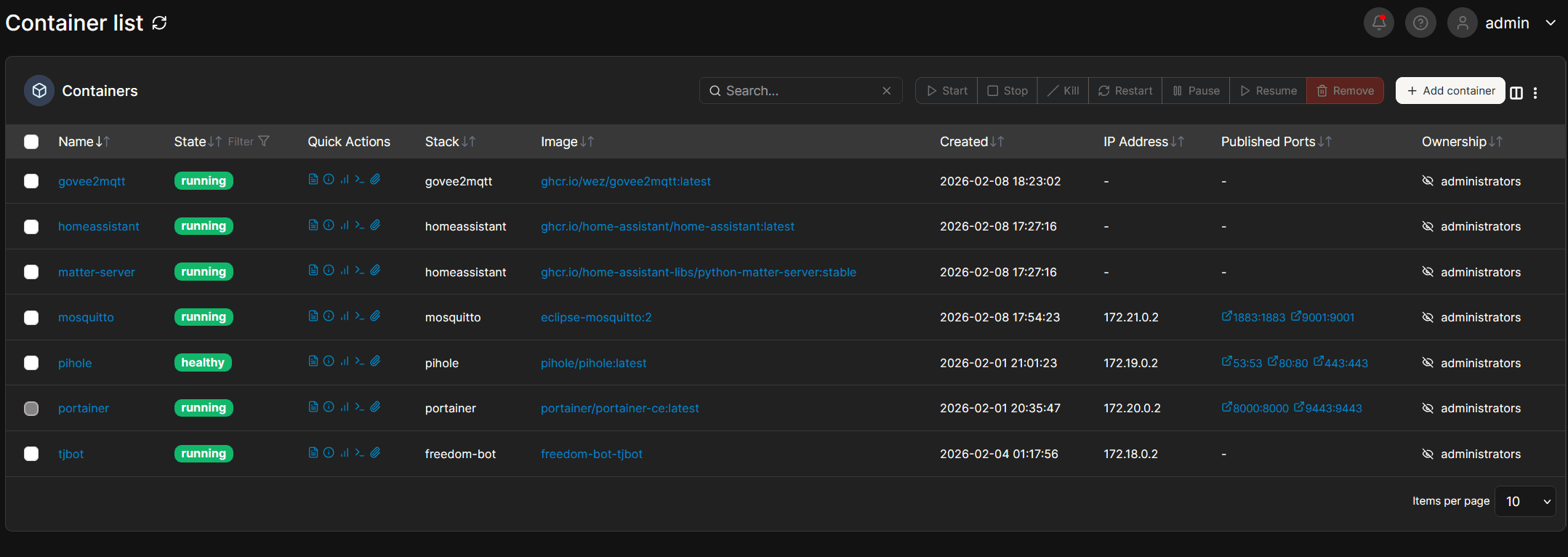 The homelab runs several self-hosted services in Docker containers managed through Portainer:
